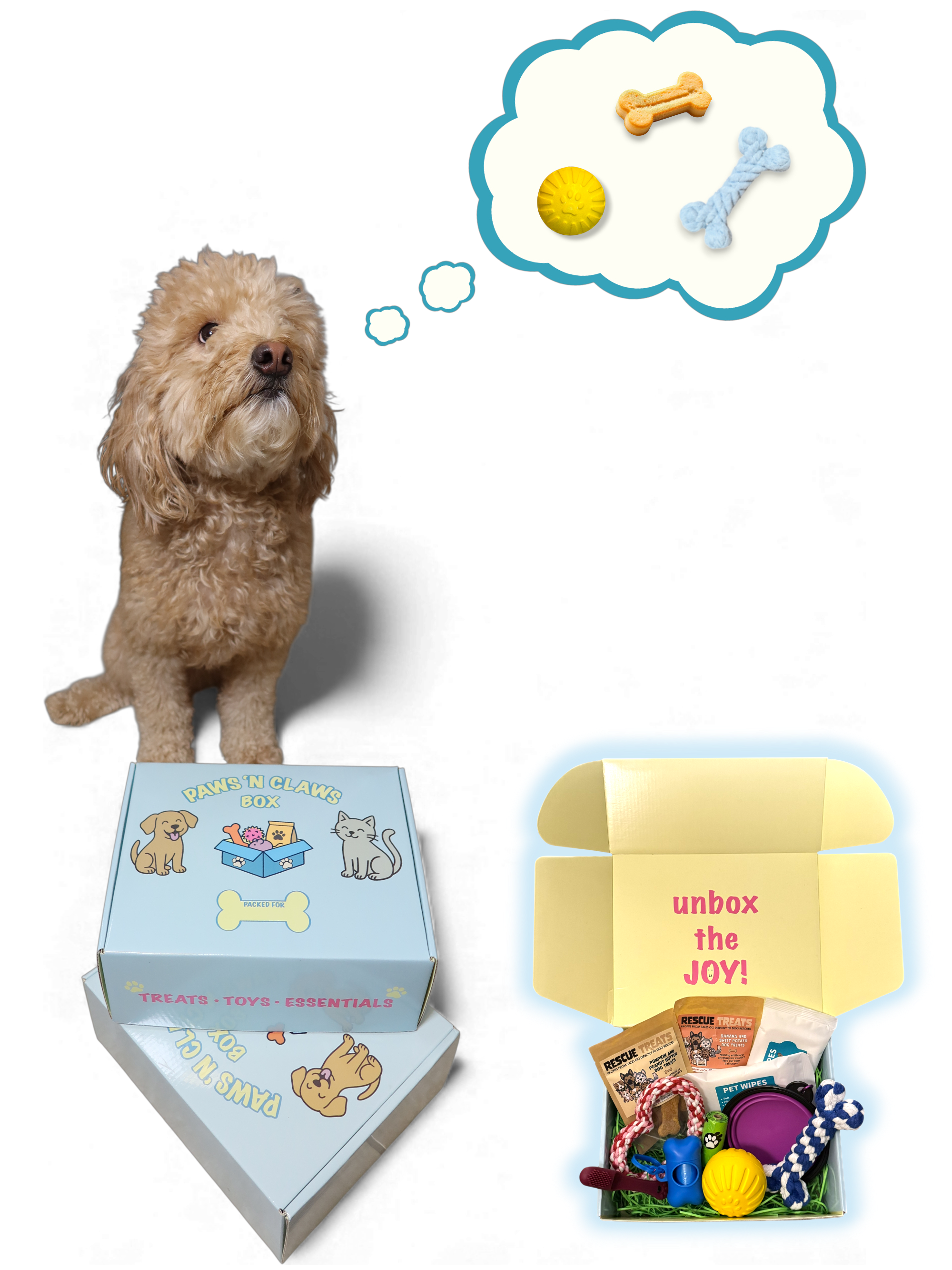 Each Paws Box is thoughtfully packed with all-natural treats, exciting toys, and everyday essentials to keep your pup happy. Every Rescue Treats purchase supports dog rescues. With every monthly box, your dog gets the love they deserve.